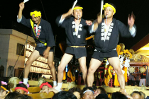 さらに、提燈山車を若衆がクルクル高速回転させ、見る人を圧巻させます。また、平成14年より地元の小学生達を対象に下町小若連を発足し、週1回の太鼓の練習をし、夏祭りに向けて頑張っています。