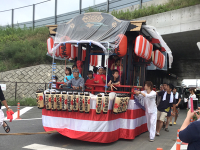 大人の提燈山車と小若の山車、2基が太鼓とともに町内を引き廻される姿を、是非ご覧ください。