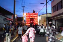 昼間の提燈山車の雄姿から、夜には蝋燭の火が灯された提燈山車に様変わりし、夏祭りムードが一気に盛り上がりを迎えます。