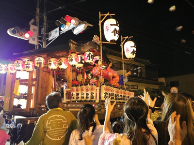 大人の提燈山車と小若の山車、2基が太鼓とともに町内を引き廻される姿を、是非ご覧ください。